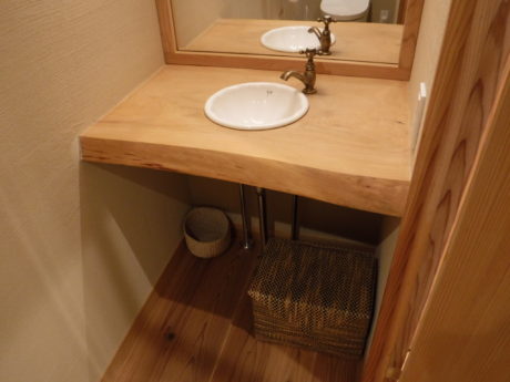 無垢の木を使った洗面台です。