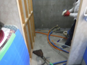 解体が終了しました。掃除をして配管工事を行います。