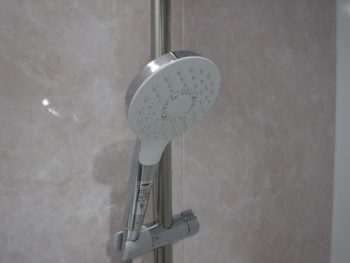省エネ水栓でサーモスタット付き。アーチハンドルで、水量調整もしやすくなりました。