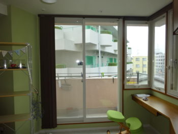 お客様のご要望 デザインマンションの斜めにカットされたリビング。市販されている家具では、なかなか思うようなデスクとTV台がありませんでした。自然素材で、無垢の木肌の表情にこだわった家具でと、さらに希望するともっと選択が少なくなり、レイアウトできる家具を探していました。